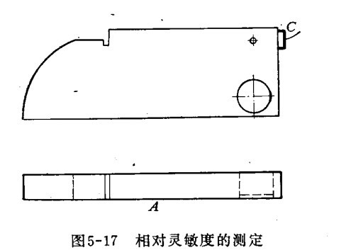 相对灵敏度测定,如下图,将超声波探伤仪探头放在C位置。灵敏度控制最初放在最小位置,移动探头,直到荧光屏上出现1.5毫米洞反射回的波为止。在给定的灵敏度控制位置下,反射的高度就是相对灵敏度。