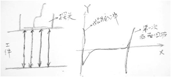 备注:t0点是发射的起始时间点(始脉冲),t1点是第一次底面反射回波被接收到的时间点。两者 的时间差乘以声速,再除以2,就是超声波在工件一个单程传递的路程,即厚度值。